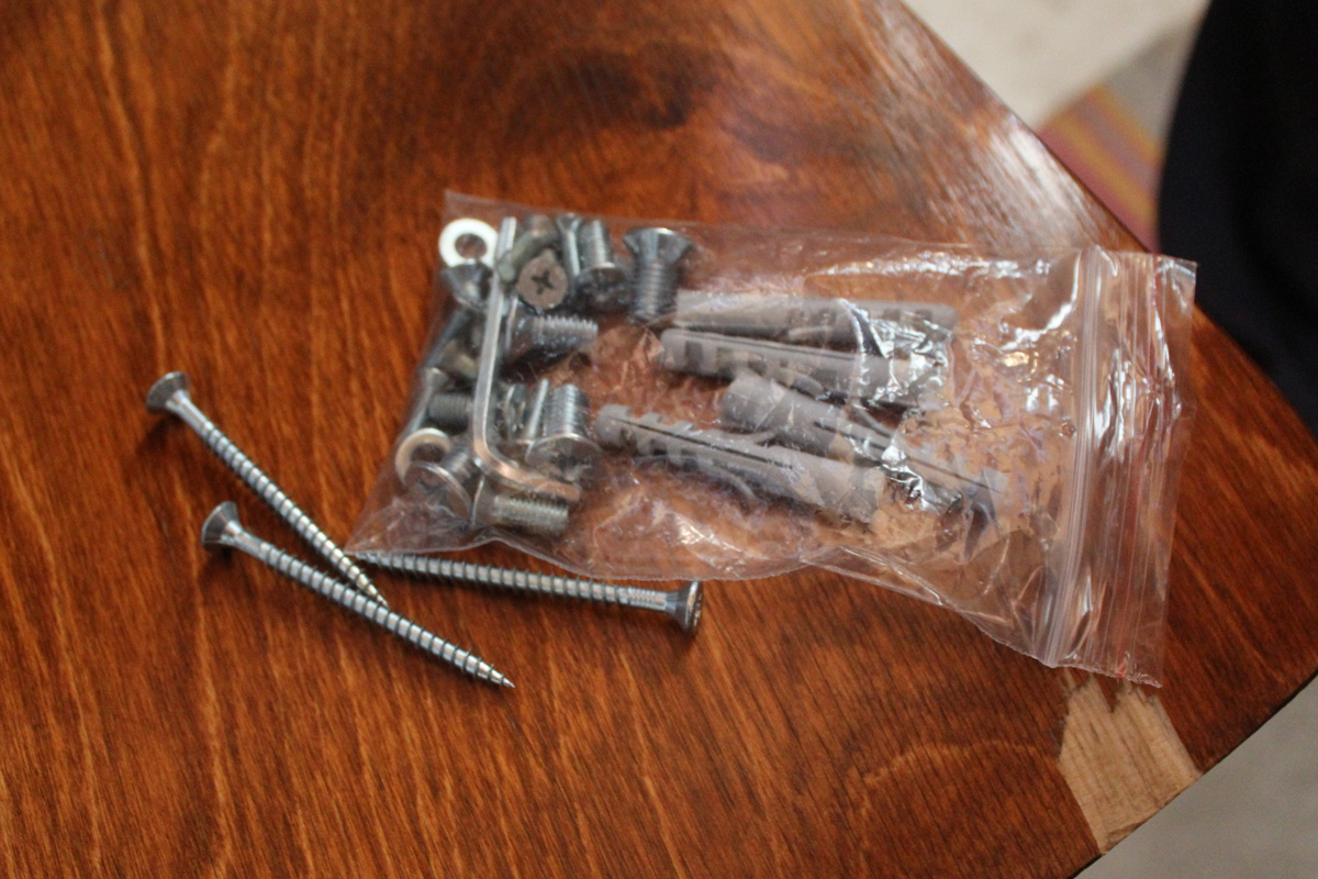 Следующий этап – необходимо привернуть основную часть кронштейна к стене. Если у вас стена из пеноблоков и гипсокартона, как в нашей случае, тогда следует попросту ввернуть в каждое предусмотренное изготовителем отверстие шуруп.