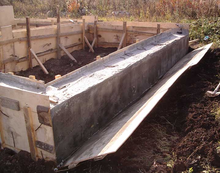 Предпоследним этапом является процесс заливки бетона в пространство между досками опалубки. Армирующие материалы, если они предусмотрены в конструкции фундамента, следует установить заранее. Процесс заливки бетона также имеет ряд нюансов, которые необходимо учитывать при производстве опалубки.