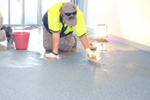 - Чтобы улучшить адгезию, отшлифуйте бетонный пол.