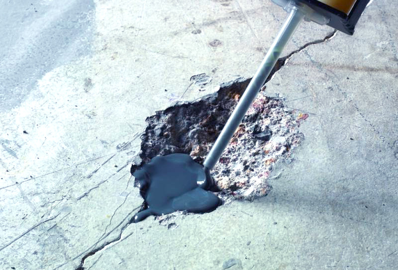- Нанести на полученную полость состав для ремонта бетона. При необходимости (усадке) нанести два слоя.