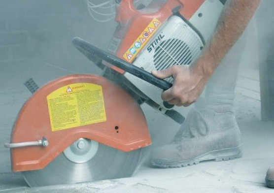 - При помощи диска с алмазным напылением вырежьте деформированный участок (в глубину около 2 сантиметров).