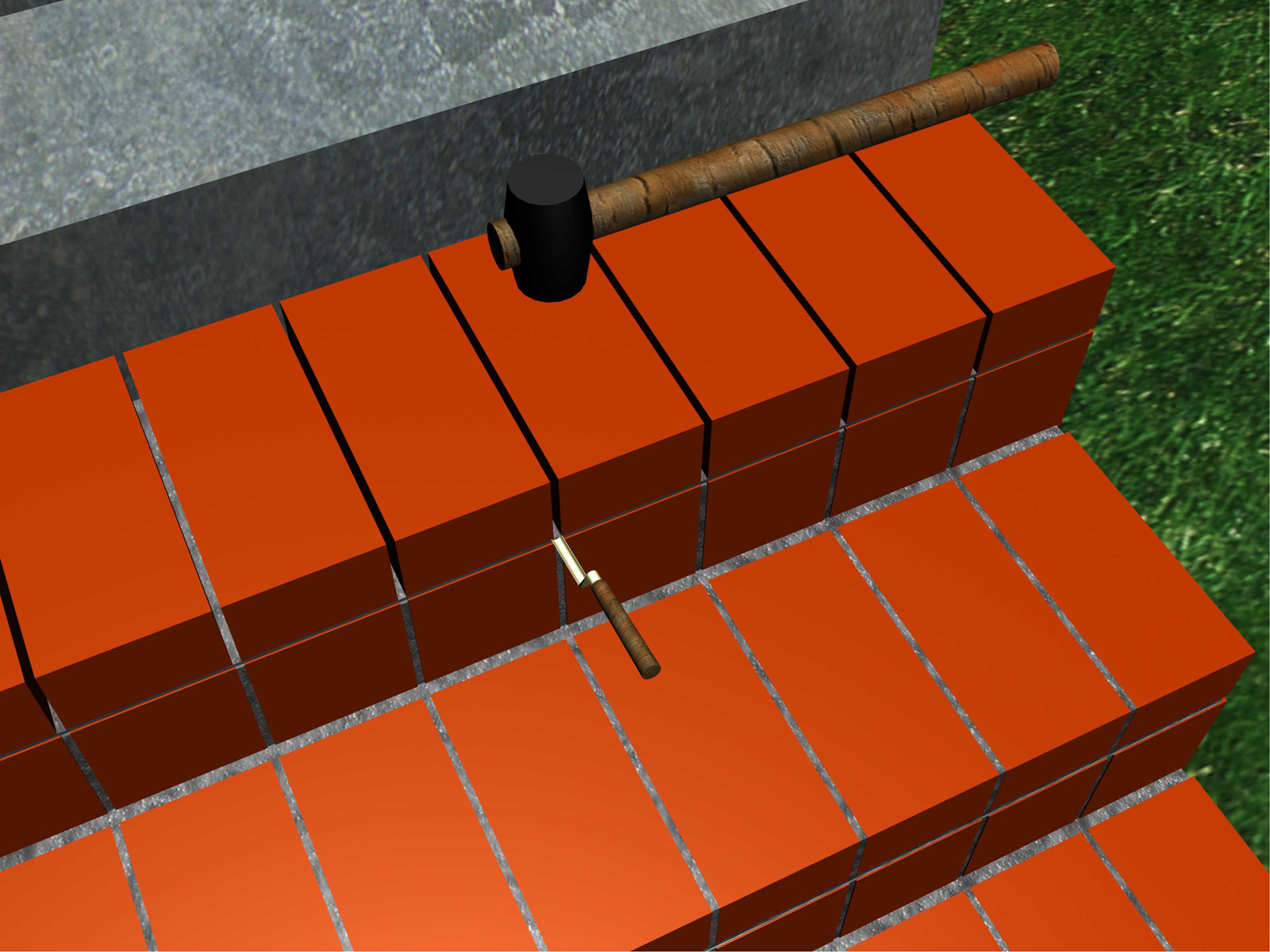 10. Для выравнивания и более плотной укладки кирпичей используйте резиновый молоток.