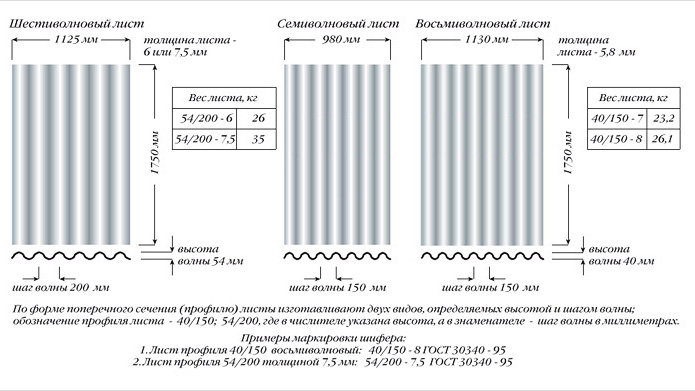 Предприятия современной промышленности РФ производят асбоцементные листы шифера, с определенными размерами по ГОСТу. Зная маркировку шифера, элементарно определить его размеры, что поможет нам в ответе на вопрос, как правильно положить шифер.