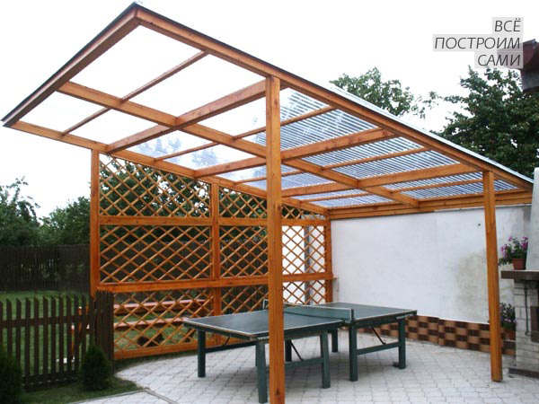 - Не стоит возводить из поликарбоната совершенно прозрачную крышу – солнце станет для вас помехой.