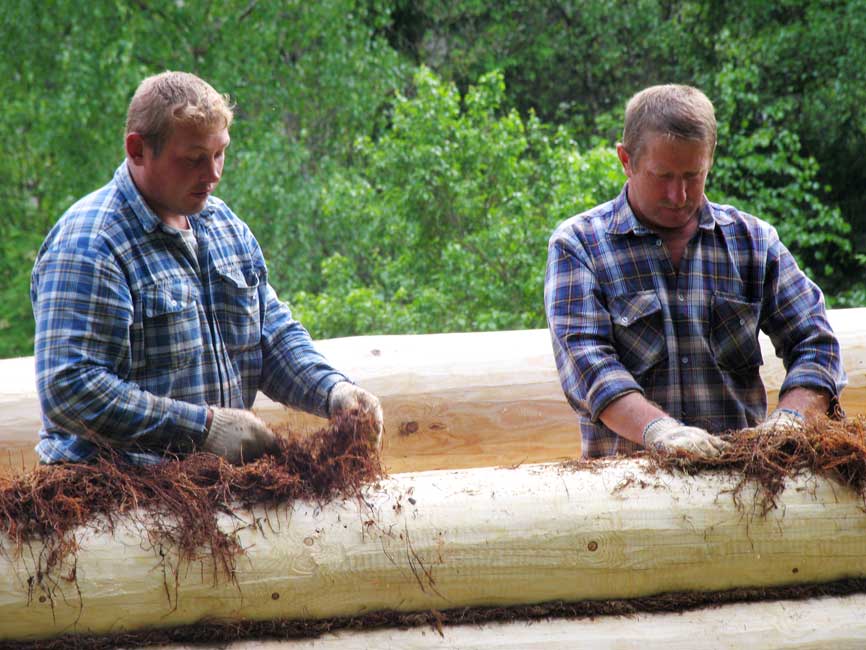 Дома из оцилиндрованного бревна отличаются от обычных бревенчатых домов. Бревна имеют идеальную форму и размеры, да и щели совсем узкие. Так нужно ли конопатить оцилиндрованное бревно? Нужно. Технология конопачения намного сложней. Здесь без специалистов не обойтись. Из-за маленьких зазоров есть большая вероятность перенабивки утепляющих материалов, что может привести к перекосу стен.