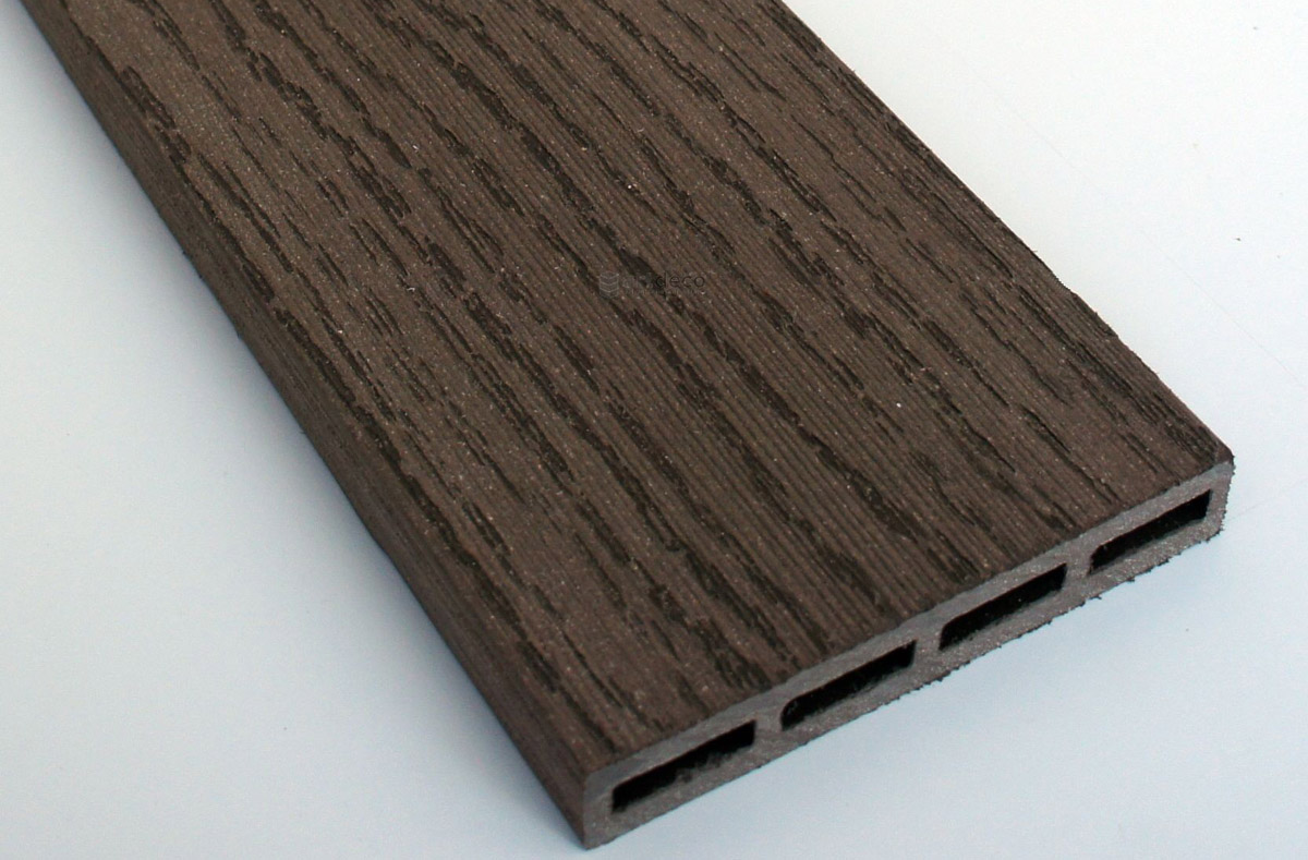 Фирма Terrapol – наикрупнейший производитель декинга. Компания выпускает пустотелую двухстороннюю доску. На выбор предлагается 3 варианта нанесенных рисунков. Стоимость квадратного метра – 2090 рублей.