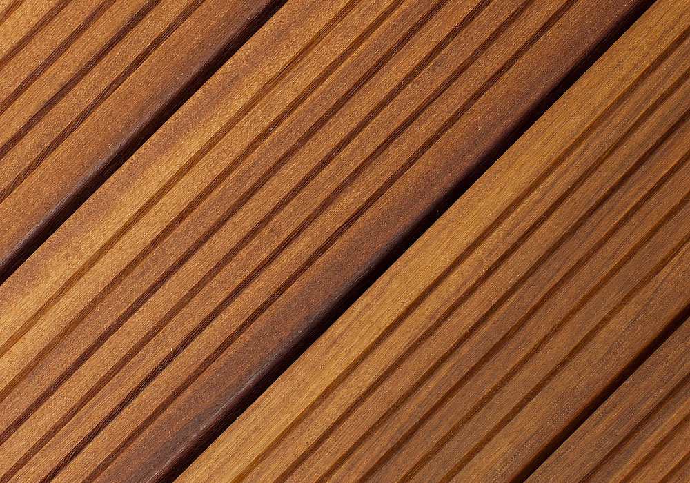 Прочностью и твердостью не уступает доска из мербау. Популярность древесина обрела благодаря коричневому цвету с удивительным оттенком и желтыми вкраплениями из минералов.