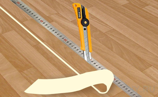 2. Если вздутия возникают по причине того, что линолеум не достаточно облежался, нужно снять плинтус и обрезать края покрытия так, чтобы между ним и стеной образовался зазор примерно около одного сантиметра.