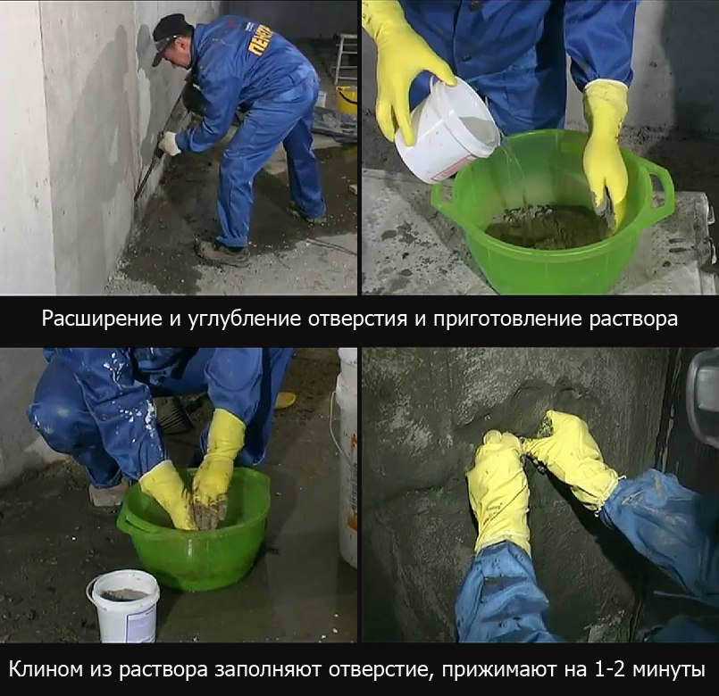 - закрыть дефекты, с учетом характера грунтовых вод, рекомендуют использовать составы глубокого проникновения и обладающие хорошими адгезивными свойствами для прочного сцепления старых поверхностей с герметизирующими составами;
