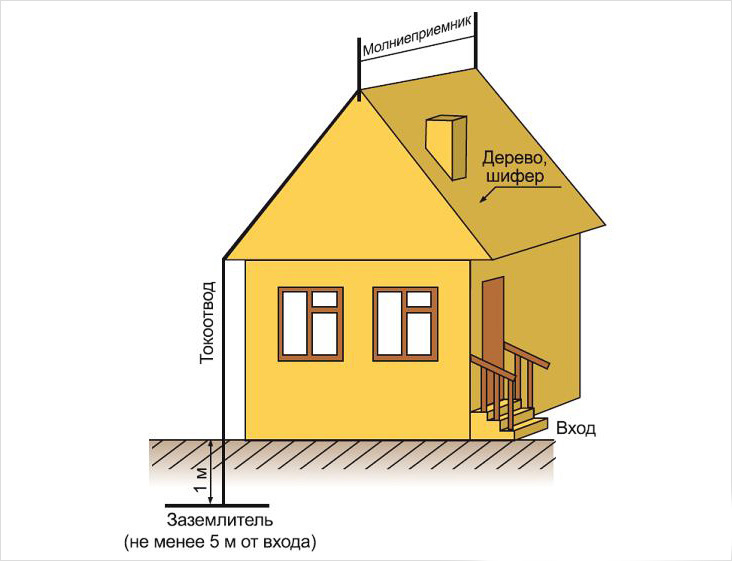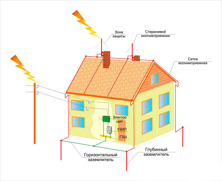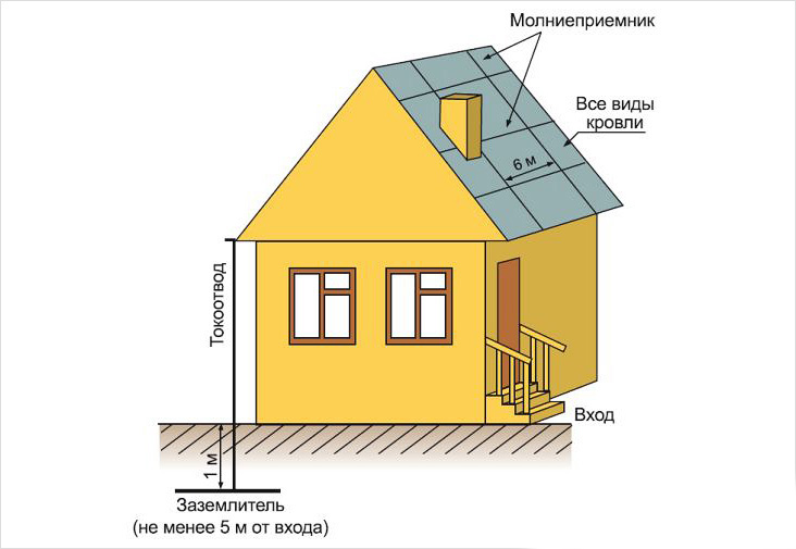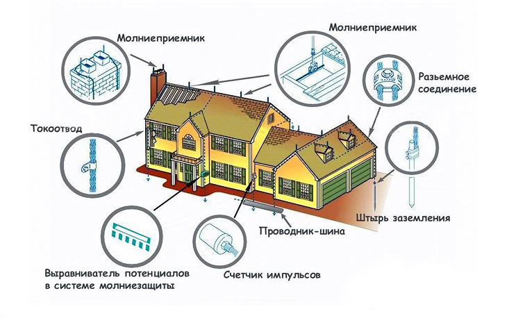 Вне зависимости от типа, молниеотвод всегда состоит из следующих элементов: