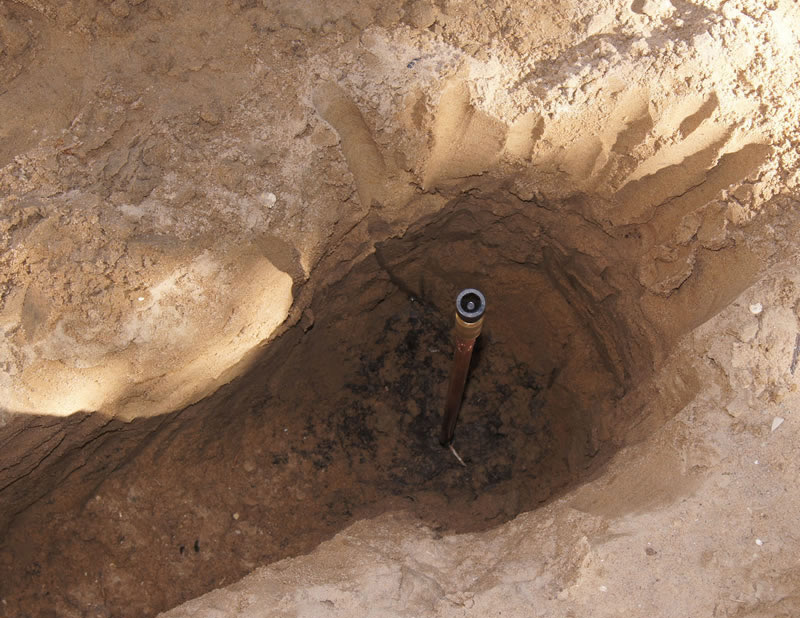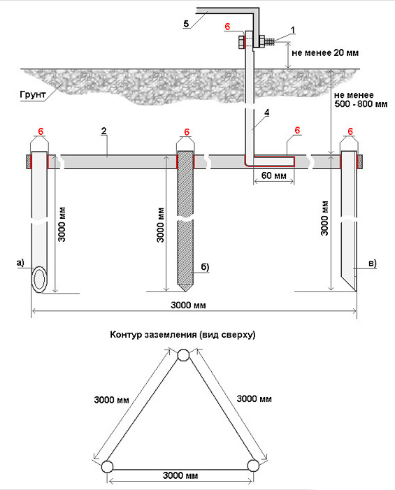 - Установить заземлитель на глубине около 80 см в почве вместе с парой металлических труб.
