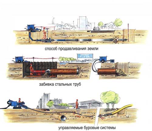 Варианты технологий бестраншейной прокладки труб: