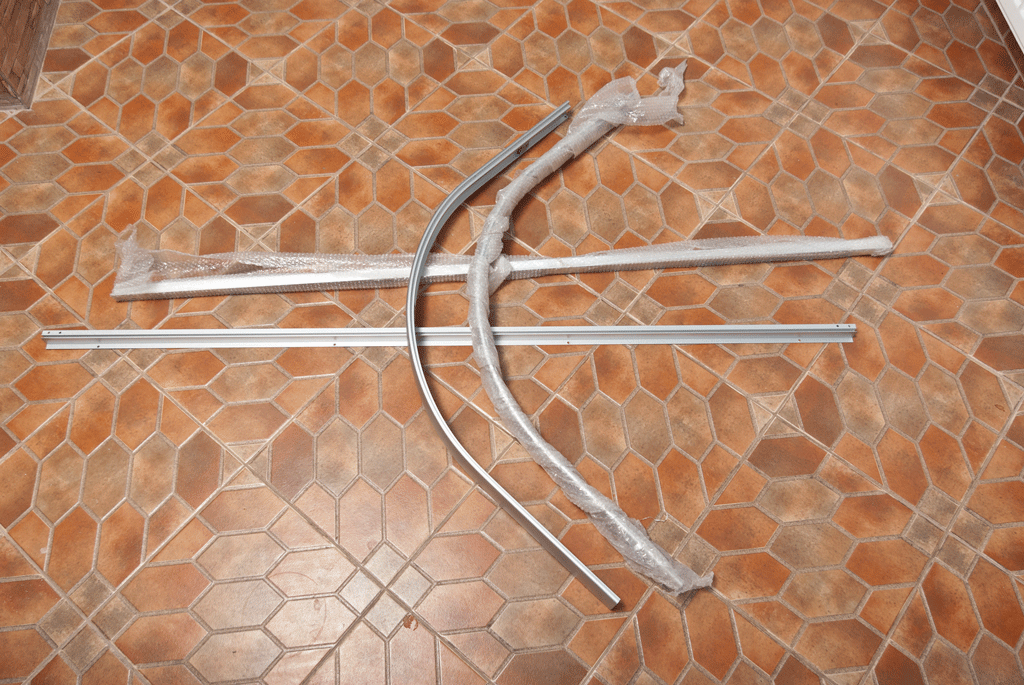 Как Вы видите на картинке, начинать установку душа стоит с монтажа металлического каркаса. Перед монтажом убедитесь, что устанавливаемые элементы выровнены с обеими сторонами. При скручивании элементов каркаса не затягивайте болты слишком сильно.