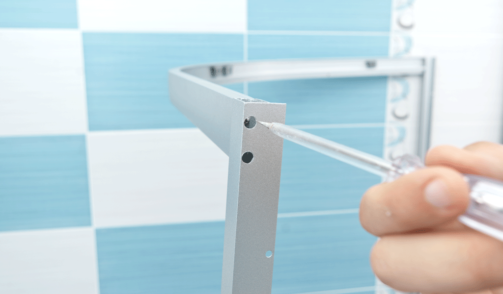 После того, как Вы просверлите все отверстия, Вам понадобятся дюбеля, соответствующие диаметру отверстий. Длины дюбелей также должна соответствовать глубине отверстий. Шурупы не должны быть длиннее глубины отверстия, иначе они не завернутся до конца, и рама не будет держаться должным образом. Также предлагаем до приворачивания рамы к стене промазать сторону металлической рамы, которая будет прилегать к стене герметиком или силиконом.