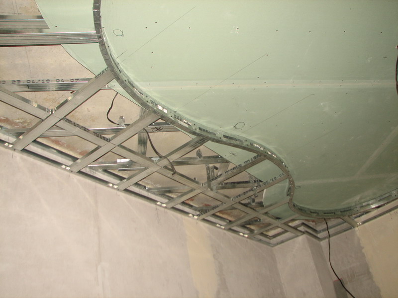 Для начала, требуется создать каркас будущего потолка. Список инструментов, которые для этого нужны, вы найдете в Интернете. Также можно поинтересоваться у профессионала. Когда каркас будет готов, можно начать обшивать его гипсокартонном. Чаще всего для этого берут саморезы. По выполнению этого мероприятия нужно будет разметить остальные уровни (если вы собираетесь делать сложный потолок с подсветкой).