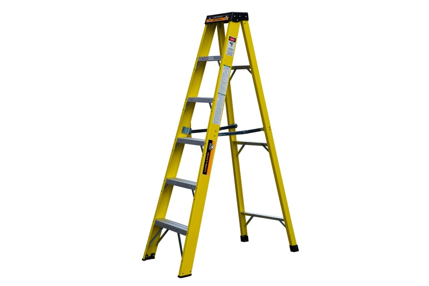 При электромонтажных работах лучше использовать диэлектрическую стремянку, которая изготавливается из прочного стеклопластика. Эта стремянка увеличивается по высоте за счет выдвижных секций.