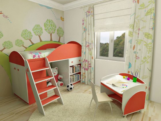 Помимо декора, с помощью фотографических обоев комнату разделяют на зоны. Сюжеты, изображенные на полотнах, разнообразны: герои отечественных и диснеевских мультфильмов, забавные животные, рисунки нейтральных пастельных тонов для самых маленьких детей. Фотообои в спальню для мальчика клеят с изображенными машинками, географическими картами, а для девочки – с принцессами, красивыми цветами или со сказочными фонами.