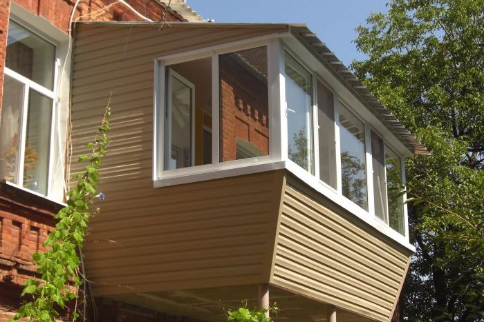 Для придания эстетической красоты, видимые части кронштейнов внутри балкона обшивают пластиковой или деревянной вагонкой. Наружная сторона чаще всего обшивается сайдингом, что придает внешнему виду солидность.