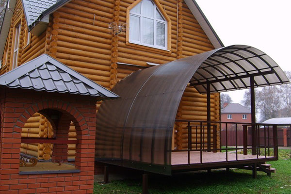 Их конструкции бывают односкатные, двускатные, полукруглые, пирамидальные, арочные, куполообразные. Словом, практически всех вообразимых форм. Выбор подходящей конфигурации зависит от ваших предпочтений и стилистического оформления фасада здания или приусадебного участка. Существует несколько видов конструкций навесов, различающихся по способам возведения.