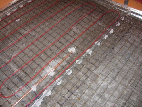 Подготовительные работы перед укладкой теплоносителя заключаются в качественной теплоизоляции – размещении на полу теплоотражающего слоя, на ней размещают специальную инфракрасную полимерную пленку, далее монтажную сетку. Сверху заливают цементным раствором. Далее на пол укладывается керамическая плитка или ламинат.