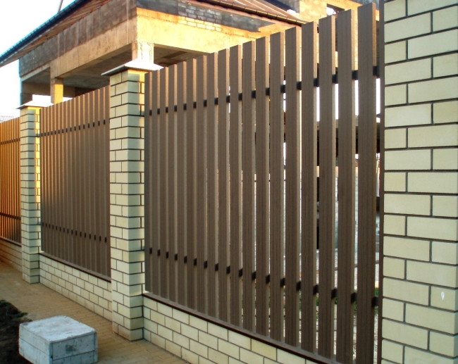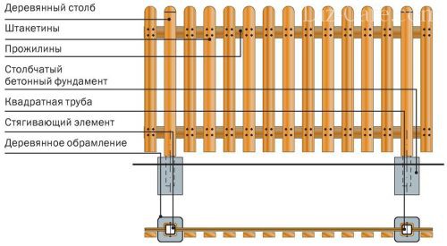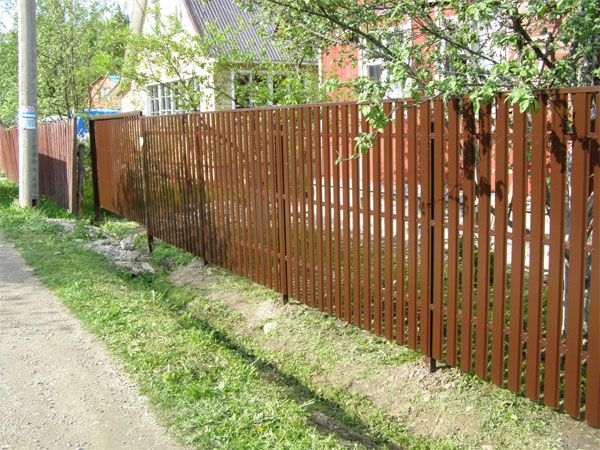 Следует заметить, что сделать забор можно и из металлических опор, например, круглой или профильной трубы. Чаще всего материал опор забора берется такой же, каким будет штакетник.