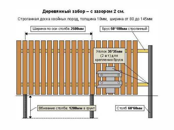 После того, как продольные брусья окажутся на своих местах, можно переходить к закреплению штакетин. Как видите, решение такой задачи, как изготовление деревянного забора из штакетника дается не столь сложно, как кажется поначалу.