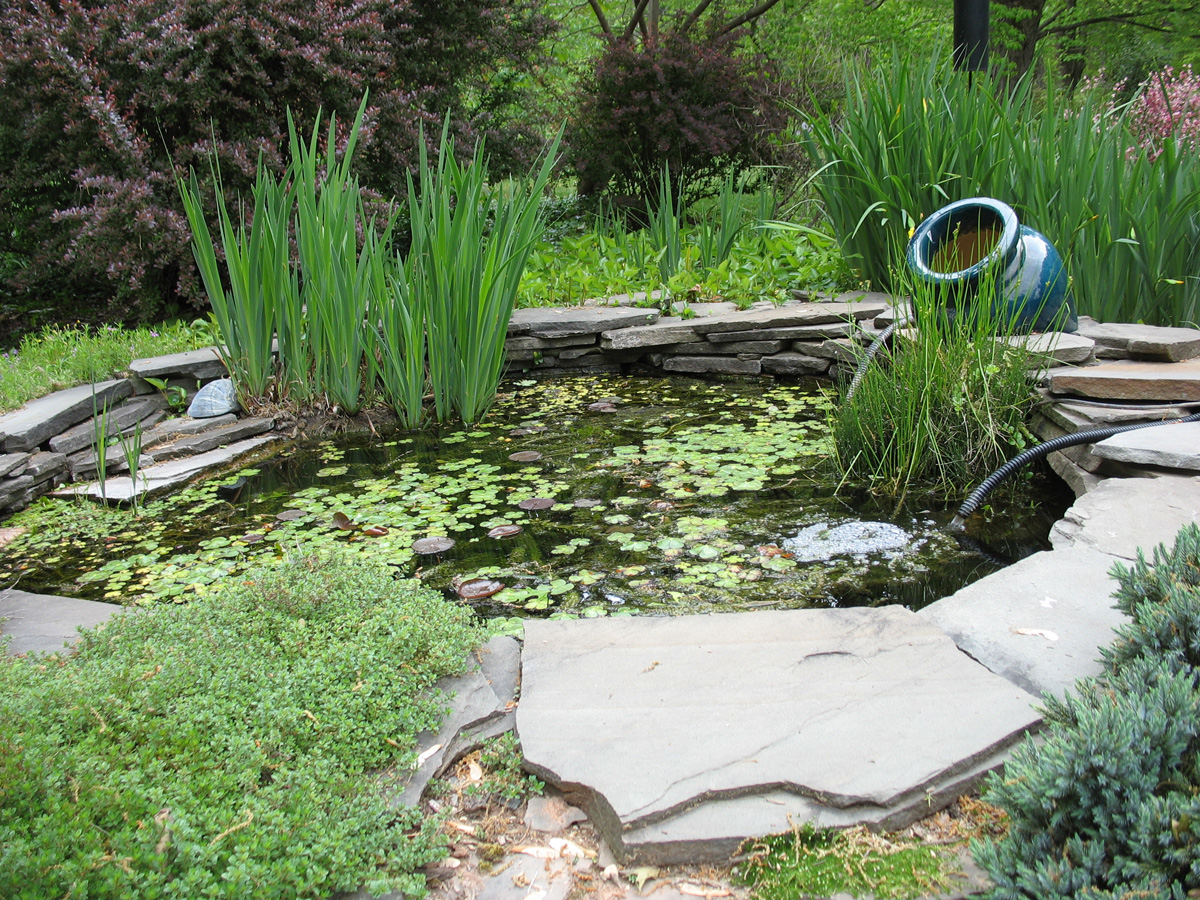 В прибрежной и средней части водоема разместите камни. Как сделать зависит от вкуса, помните, чтоб любой камень, должен служить основному назначению – поддержанию биологического равновесия водоема, например: