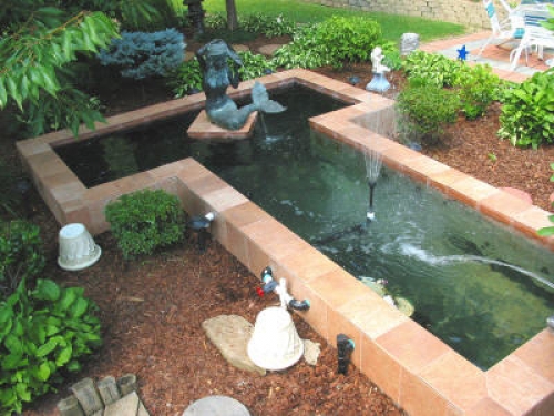 Периметр водоема необходимо замостить тротуарной плиткой или искусственным камнем на ширину 0,5-1.0 метр. Это позволит избежать попадания почвы в водоем.