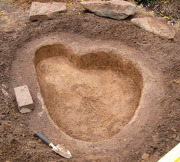 - Для начинающего строителя, задумавшего вырыть искусственный водоем своими руками, рекомендуем выбрать форму водоема с правильными геометрическими формами. Лучшие варианты котлованов для новичков имеют форму прямоугольника, круга, овала. Главное преимущество таких водоемов – это удобство проведения земляных работ и простота декора пространства, обрамляющего чашу водоема. Кроме того, сооружения с правильными очертаниями достаточно легко вписываются в ландшафт. Водоем, прямоугольной формы, можно дополнить водопадом, а круглый – фонтаном.