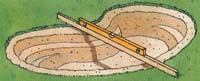 - Очерчиваем три контура. Это необходимо для того, чтобы углубление было ступенчатым, а водоем зонированным. Контуры очерчиваем также песком или шнуром, как описано выше.