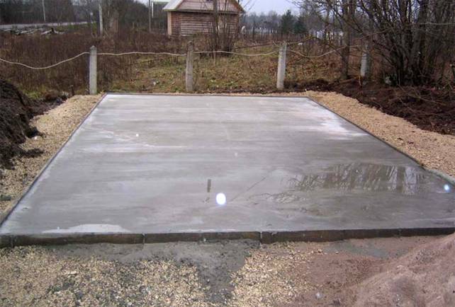 - Гравийную подушку заливаем бетонным раствором высотой примерно 5 см.