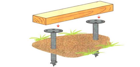 - На выступающие бруски настилают по периметру толстую доску, которая может служить в качестве опоры для фундамента (не забывайте все деревянные детали обрабатывать для придания им водоотталкивающих свойств).