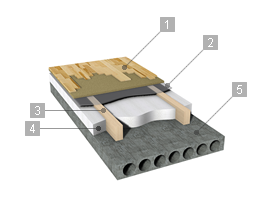 - независимое расположение слоев пола, позволяет повысить активную звукоизоляцию;