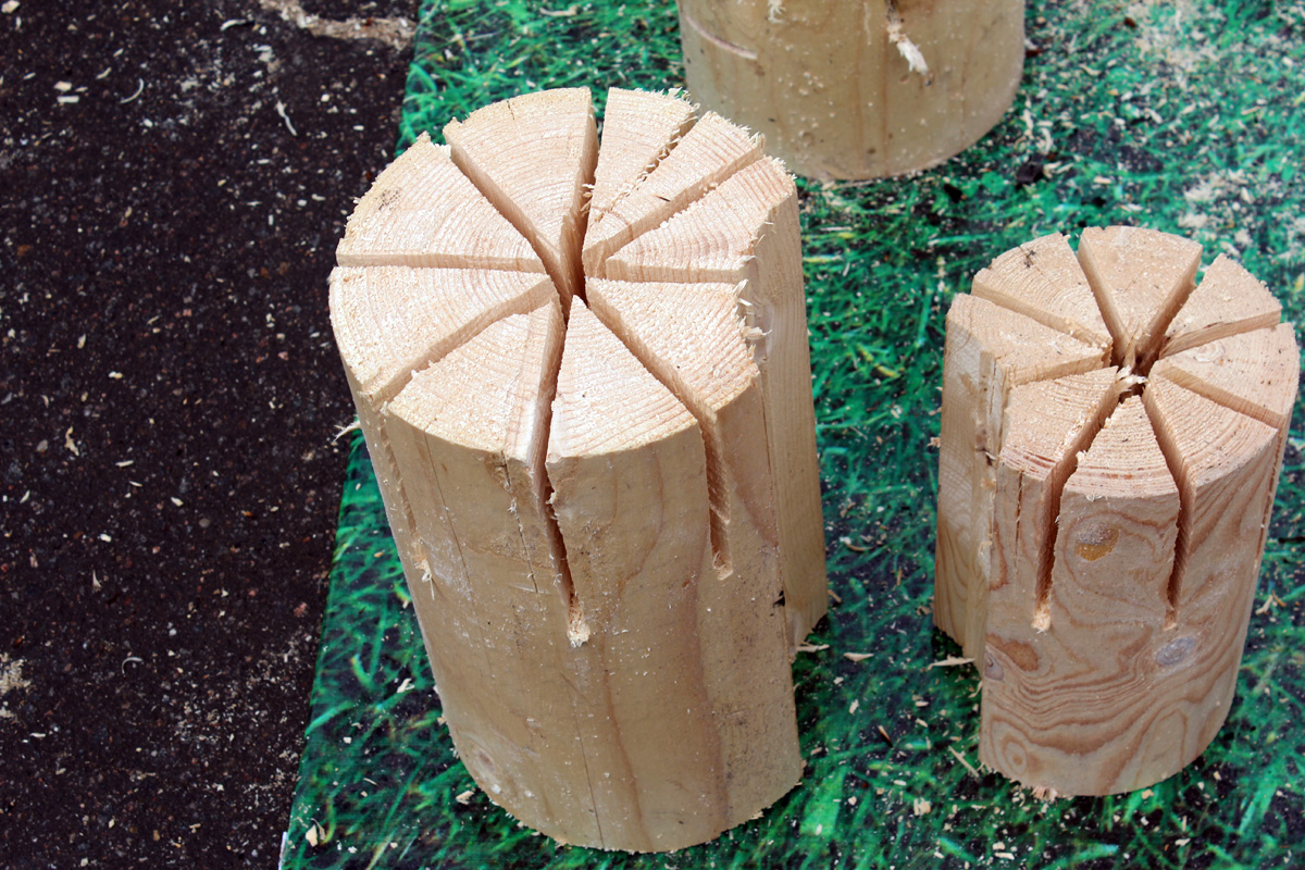 3. Расколите на четыре части сухое бревно. Из них позже будет собираться шведский костер.